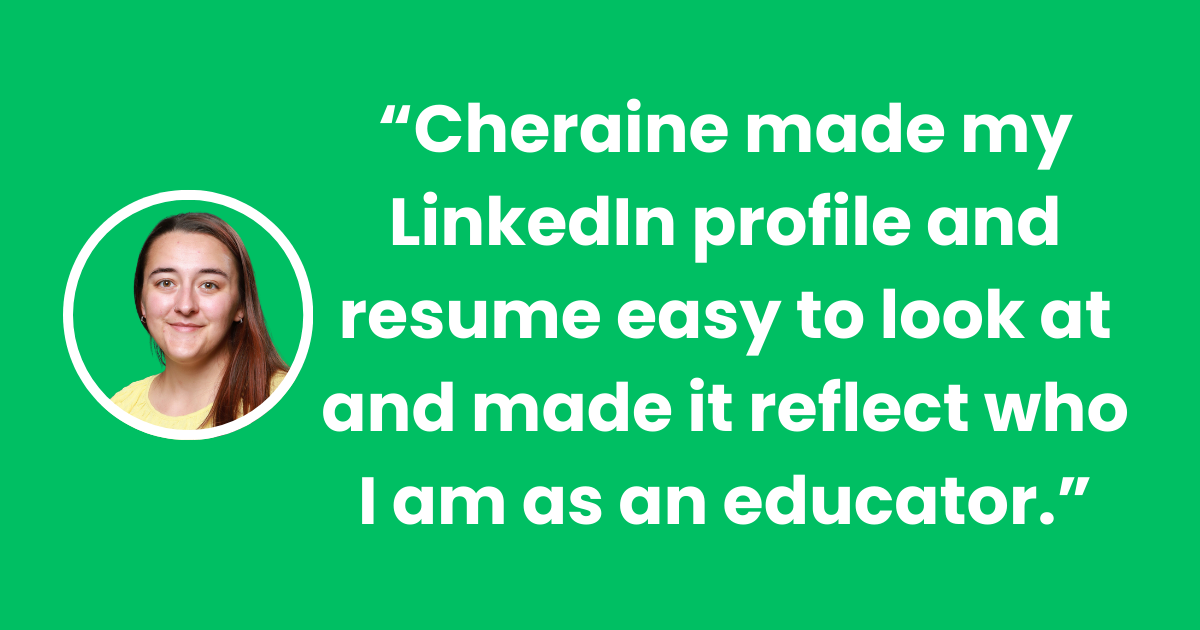 Cheraine made my LinkedIn profile and resume easy to look at and made it reflect who I am as an educator.